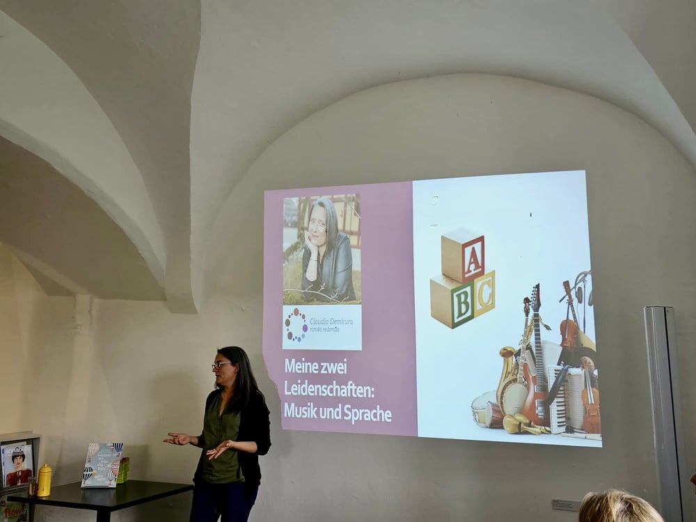 En Berlín, desarrollé mi primer proyecto «Jardín musical», que combina ambas disciplinas. Tras trasladarme a Suiza, mi tesis de máster en lingüística aplicada dio lugar al exitoso proyecto Ronda redonda, que lleva diez años acompañando a muchas familias.
